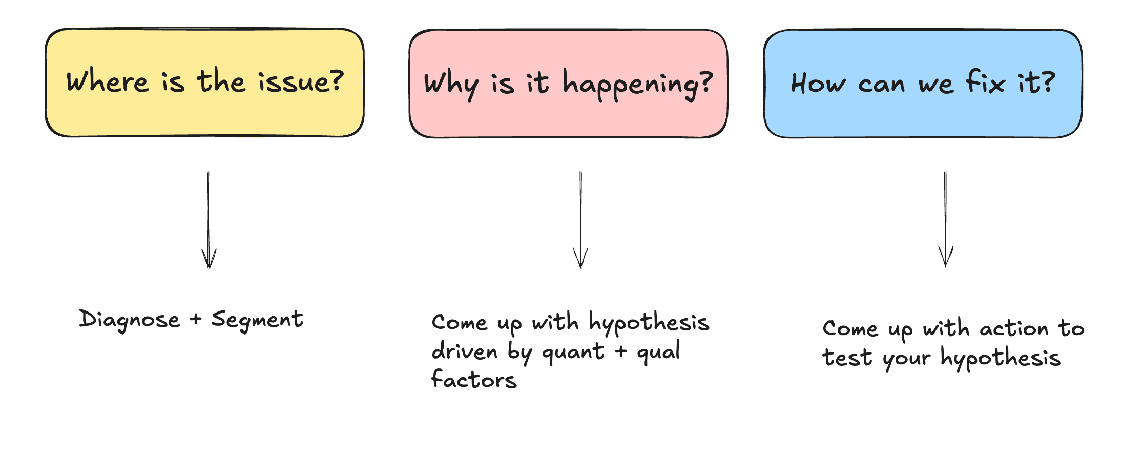 Diagnostic: e.g. Engagement dropped 20%. What would you do?